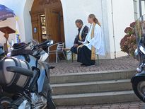 Nachdem die Bikes gesegnet waren nahmen viele das Angebot zum Einzelsegen an und begegneten sich anschließend bei leckerem Kuchen und Kaffee. Danach folgte eine gemeinsame Ausfahrt in die Rhön.